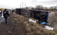 The modified off road racer driven by Kevin Price, 44, from San Francisco, California rolled and tumbled into the crowd on a curve that had been the scene of other accidents during the race crushing Vital Jorge Armando Limas, 39 and injuring two young boys ages 11 and 16.